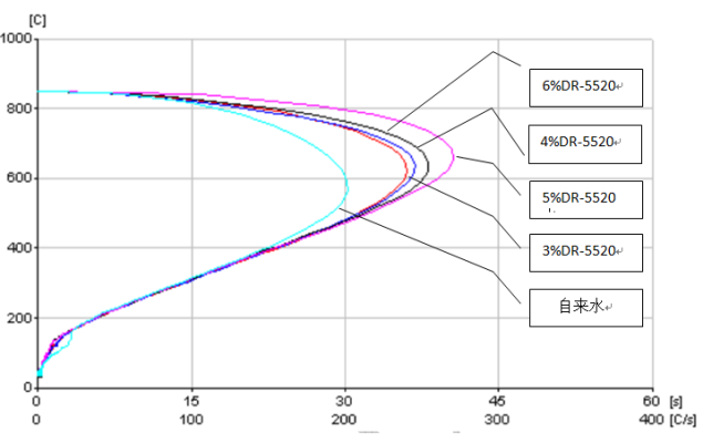 1. DR-5520水溶性淬火劑蒸汽膜階段短,高溫冷速極快,可迅速躲過C曲線的鼻尖;